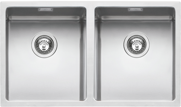 Descrizione: Lavello doppia vasca quadra in acciaio inox da incasso, filo e sottotop, cm 75