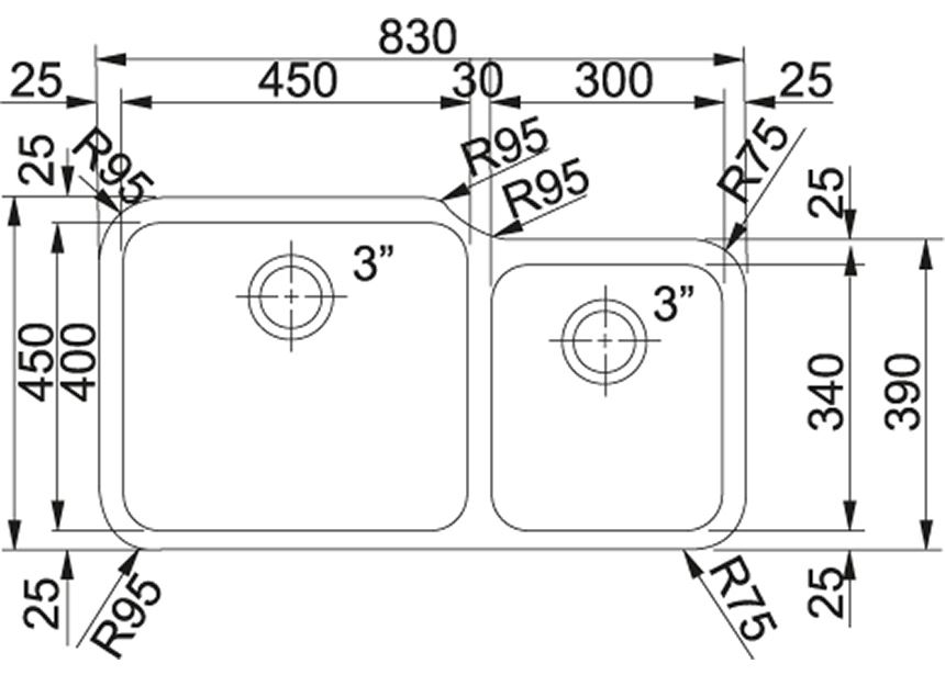 Descrizione: Lavello in acciaio inox satinato, sottotop, 2 vasche, base 90
