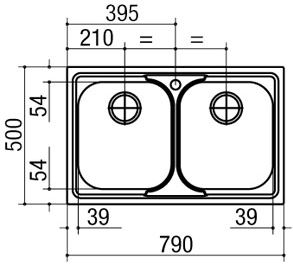 Descrizione: Lavello doppia vasca in acciaio inox Linea Vega, cm 79, sifone in dotazione