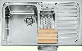 Descrizione: Lavello multifunzione da incasso in acciaio inox, a una vasca, una bacinella e un gocciolatoio, cm 88
