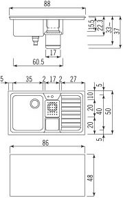 Skip Navigation LinksCategorie > Lavelli da incasso > Lavelli in acciaio > Lavelli 90 cm > Alpes 50x88/1V1B1S-E - gocciolatoio a destra