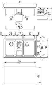 - Dimensioni foro incasso 86 x 48 cm