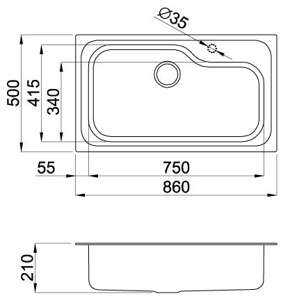 Descrizione: Lavello 1 vasca 86x50 cm