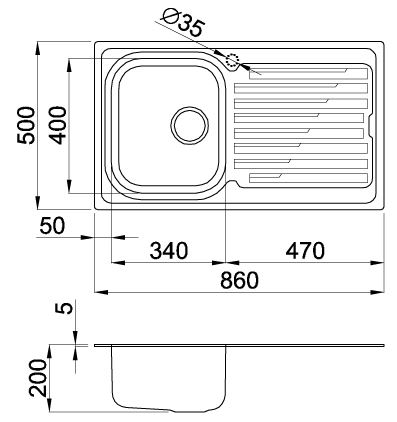 Descrizione: Lavello 1 vasca con gocciolatoio 86x50 cm