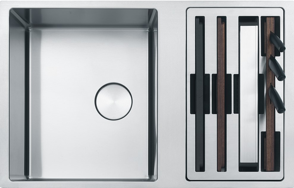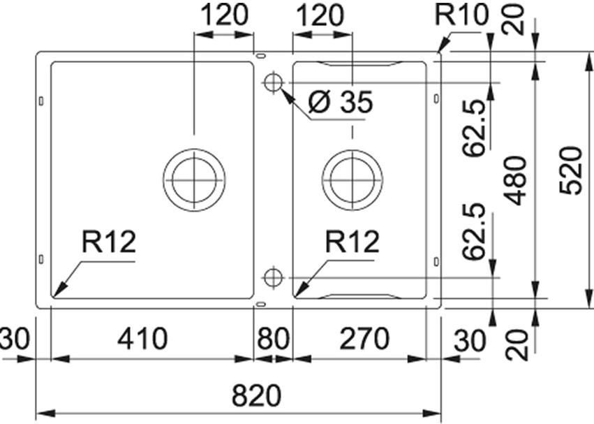 Descrizione: Lavello da incasso SOTTOTOP in acciaio inox satinato Box Center, 2 vasche, cm 82, base da 90, reversibile