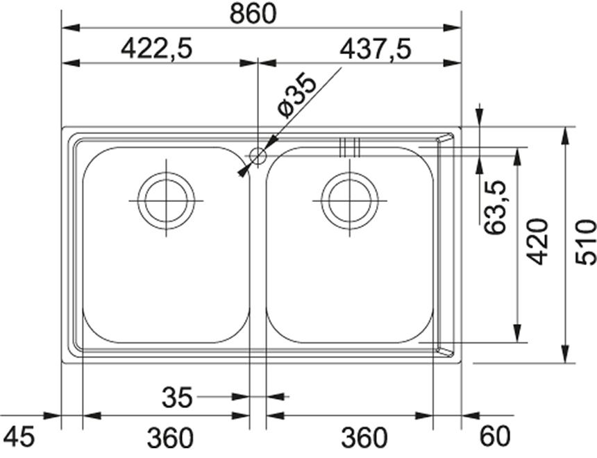 Descrizione: Lavello in acciaio inox, serie Neptune, 2 vasche, base 80