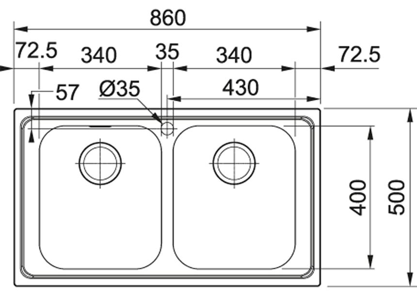 Descrizione: Lavello in acciaio inox, serie Smart, 2 vasche, base 80