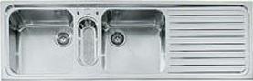 Descrizione: Lavello da incasso in acciaio inox a due vasche maggiorate, una bacinella e un gocciolatoio, cm 158