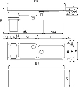- Foro incasso: 155x47 cm