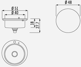 Descrizione: Vasca tonda con ala maggiorata, diametro 51 cm, apertura/chiusura tappo tramite pomello