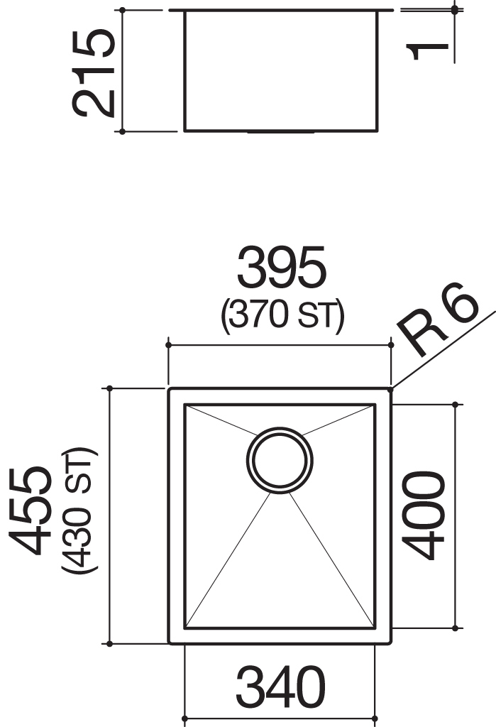 Descrizione: Vasca quadra in acciaio inox da incasso, filo e sottotop, cm 34, R.0