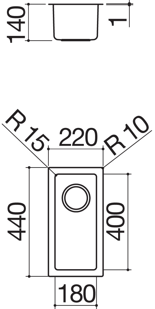 Descrizione: Vasca quadra in acciaio inox da incasso, filo e sottotop, cm 18
