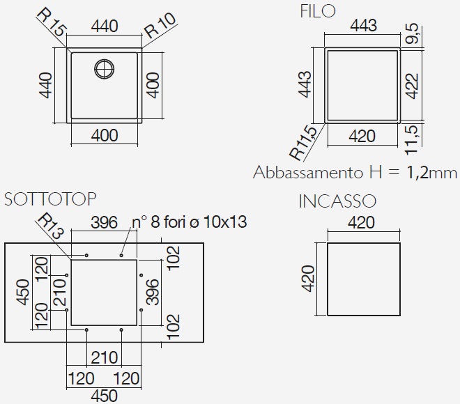 - Vasca raggio "15"