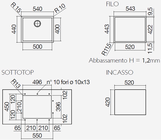 - Vasca raggio "15"