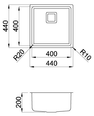 Descrizione: Lavello 1 vasca 44x44 cm filotop o sottotop