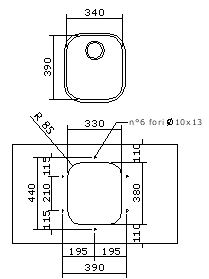 Descrizione: Lavello con vasca singola sottotop, Linea Sottotop, cm 34x39