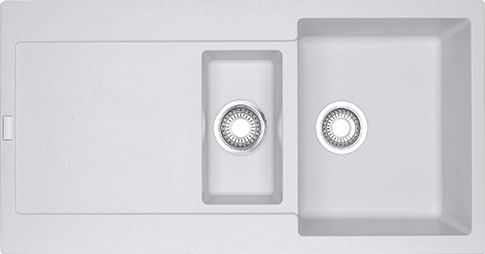 Descrizione: Lavello in Fragranite serie Maris, 1 vasca, 1 vaschetta con gocciolatoio, base 60