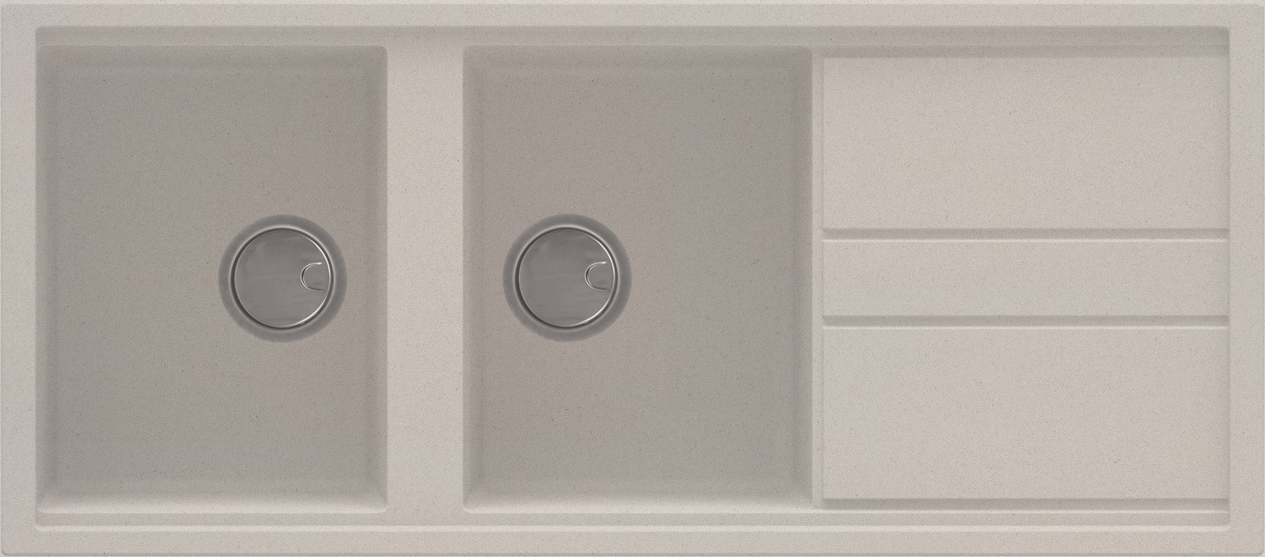 Descrizione: Lavello 2 vasche con gocciolatoio, sopratop, 116 x 51 cm, profondità vasca 20 cm
