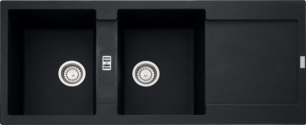 Descrizione: Lavello in Fragranite serie Maris, 116 cm, per base da 80 cm, due vasche e un gocciolatoio