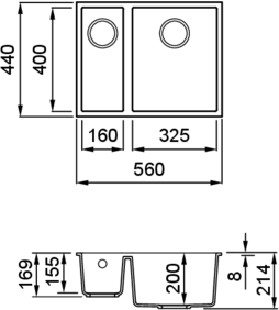 Descrizione: Lavello 2 vasche 56x44 cm sottotop