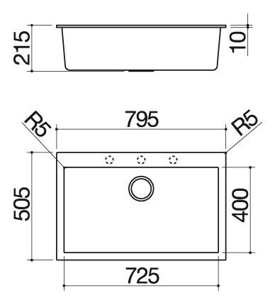 • foro rubinetto: predisposizione per 3 fori