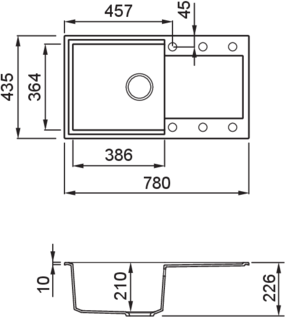 Descrizione: Lavello 1 vasca con gocciolatoio 780x435 mm