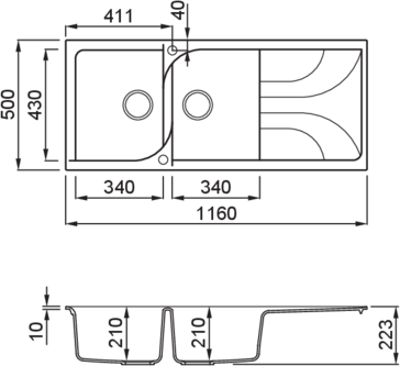 Descrizione: Lavello 2 vasche con gocciolatoio, cm 116