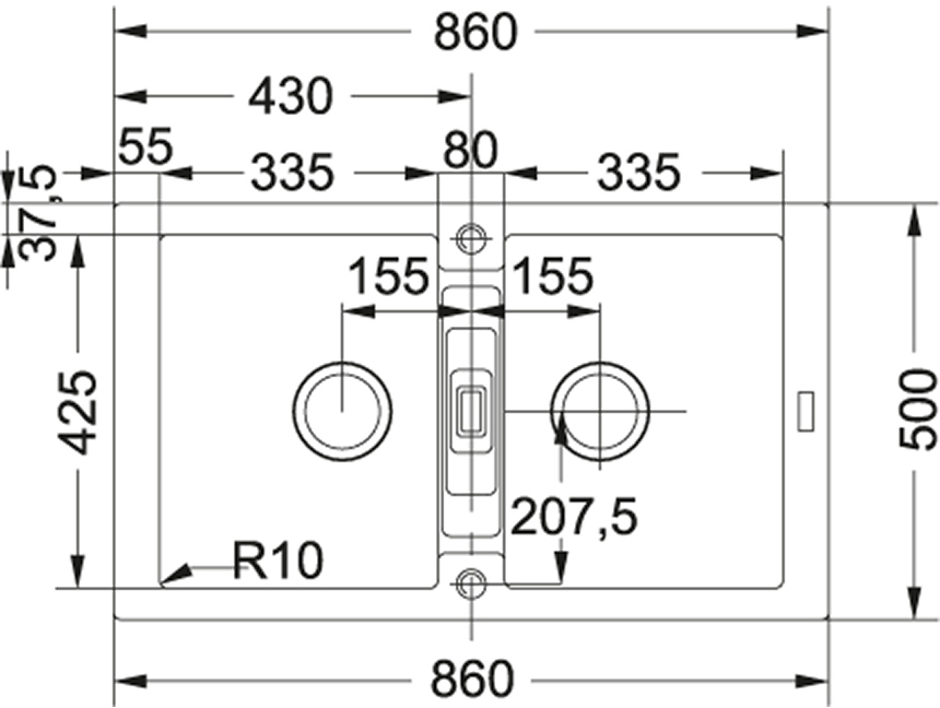 • Vasca 2x 335x425x200 mm