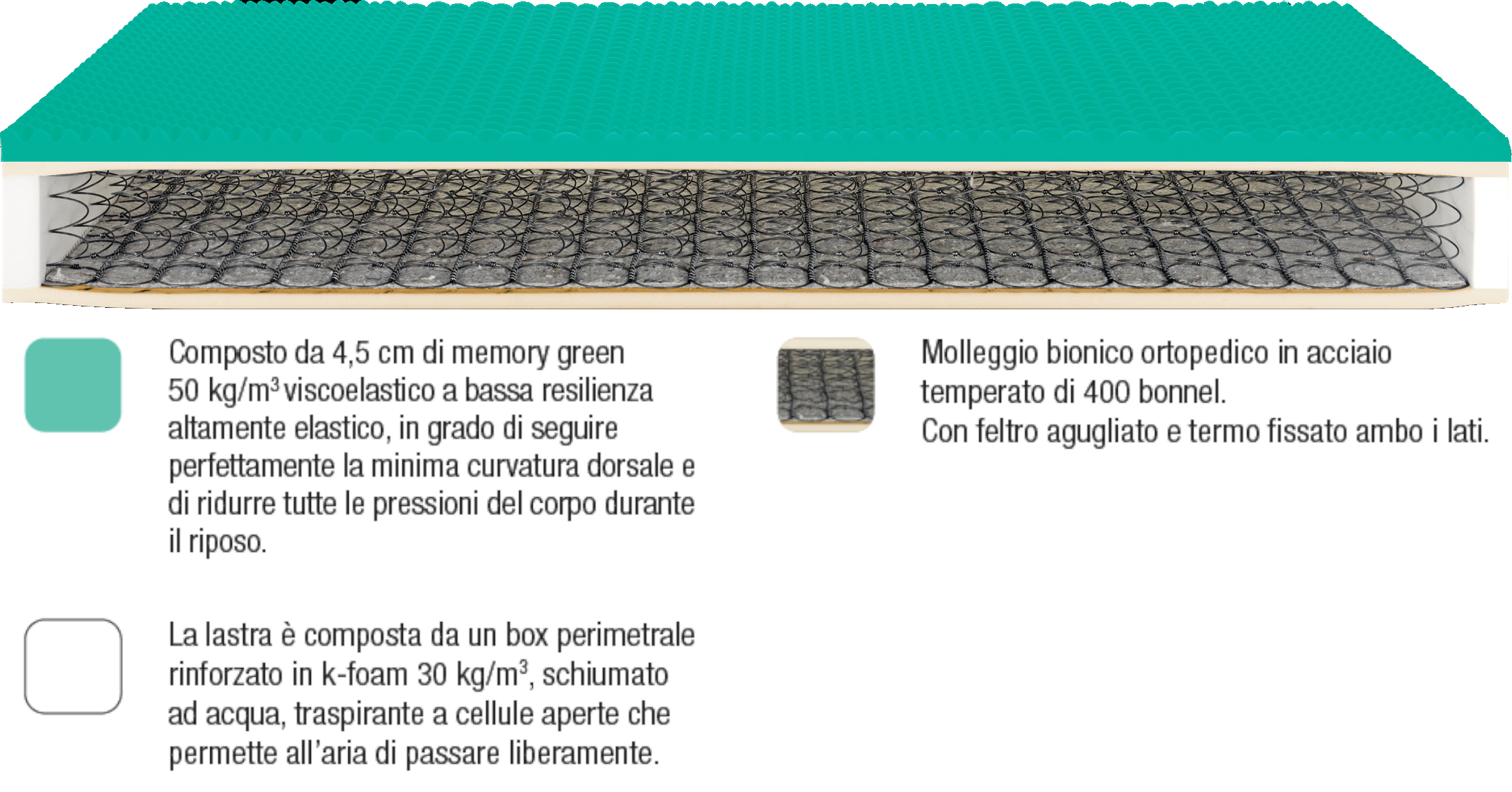 Descrizione: Materasso a molle, rigidità media, imbottitura in fibra anallergica, sfoderabile, alt. 24 cm, dispositivo medico