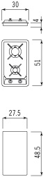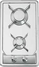 Descrizione: Piano cottura da incasso semifilo in acciaio inox a due fuochi, cm 30, comandi frontali