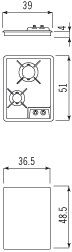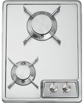 Descrizione: Piano cottura da incasso semifilo in acciaio inox a due fuochi, 39 cm, comandi frontali