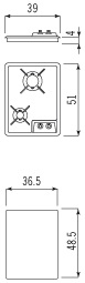 Descrizione: Piano cottura da incasso semifilo in acciaio inox a due fuochi, 39 cm, comandi frontali