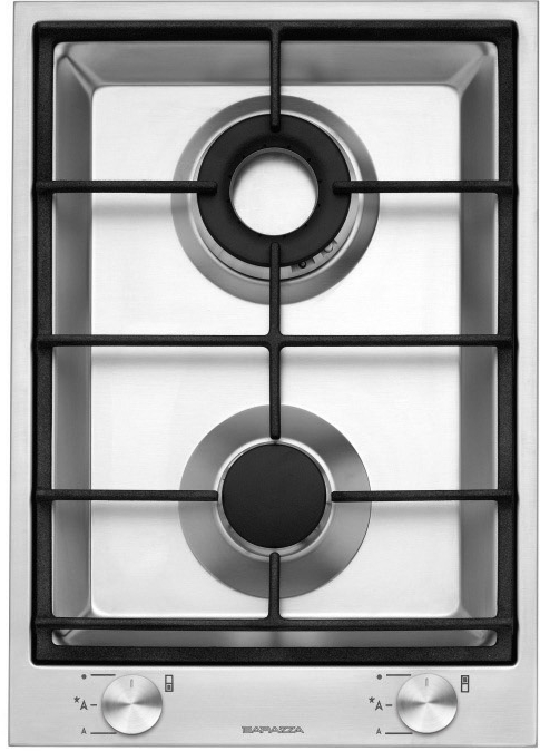 Descrizione: Piano cottura B_Free a gas valvolato in acciaio incasso, cm 36, 2 fuochi, comandi frontali