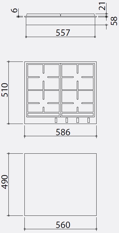 Descrizione: Piano cottura a gas valvolato acciaio inox, 60 cm, accensione elettronica