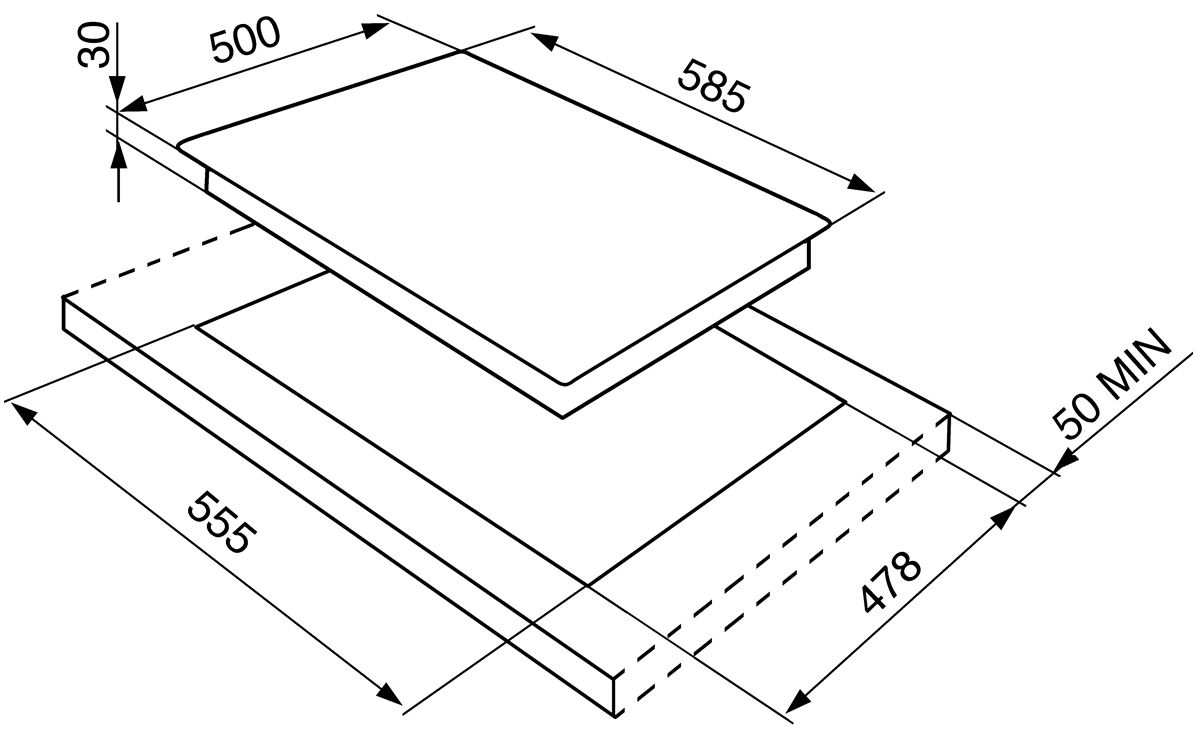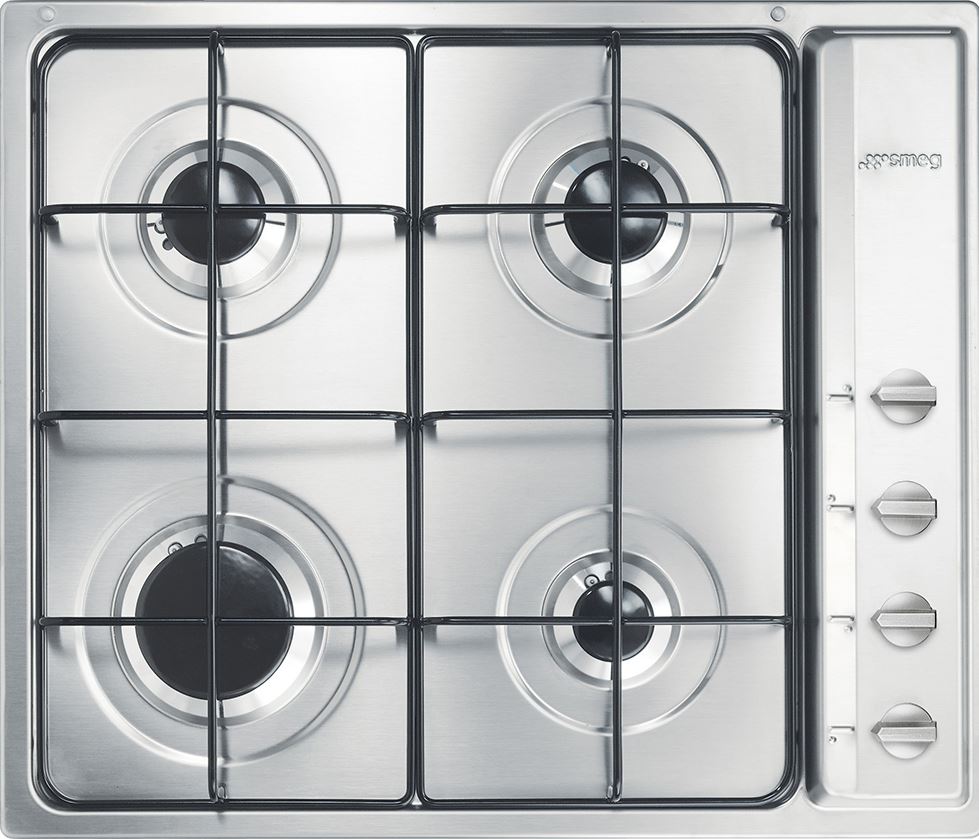 Descrizione: Piano cottura a gas valvolato, 4 fuochi, 60 cm, accensione nelle manopole, griglie smaltate