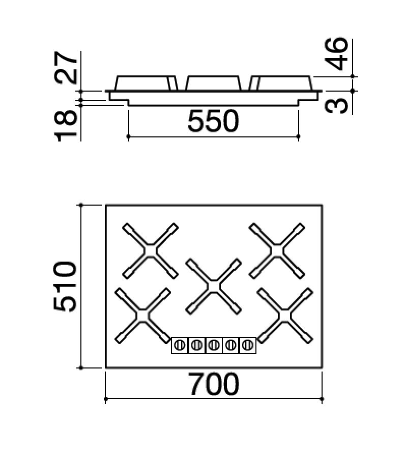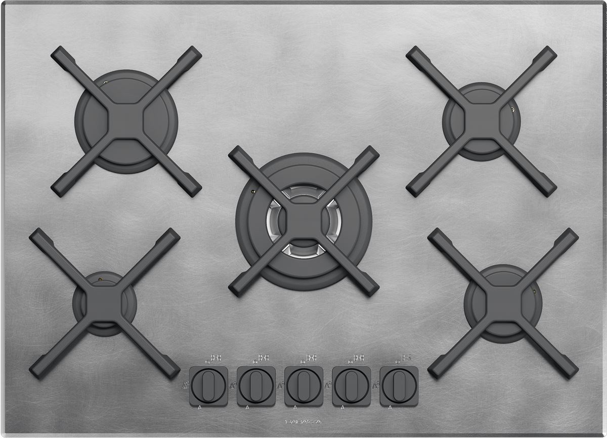 Descrizione: Piano cottura a gas valvolato Unique, 70 cm, 5 fuochi 1 a tripla corona, griglie ghisa, acciaio inox vintage