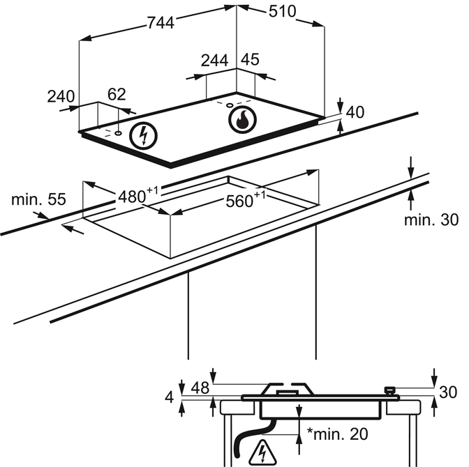 Descrizione: Piano cottura a gas valvolato, 75 cm, Slim Profile 2.0, 5 fuochi Speed Burner di cui 1 Wok, comandi frontali