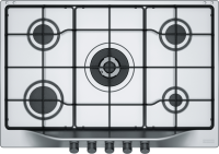 Descrizione: Piano cottura a gas valvolato, cm 75, 5 fuochi 1 a tripla corona, griglie smaltate