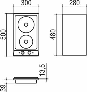 Descrizione: Piano cottura con piastre elettriche, 2 zone cottura, 30 cm, Linea Vega