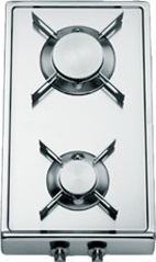 Descrizione: Piano cottura da appoggio-ribaltabile in acciaio inox a due fuochi gas grandi Ø 70 e 100 mm, cm 29,5, comandi frontali