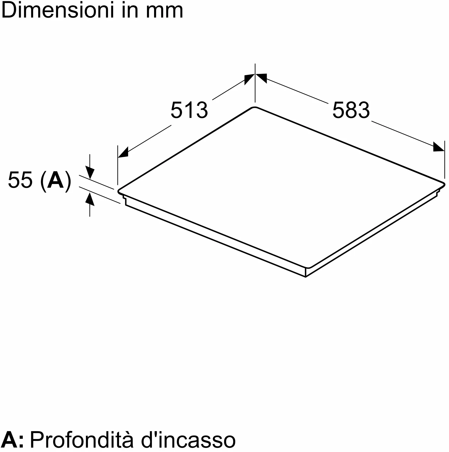 Installazione - Dimensioni (AxLxP): 55x583x513 mm