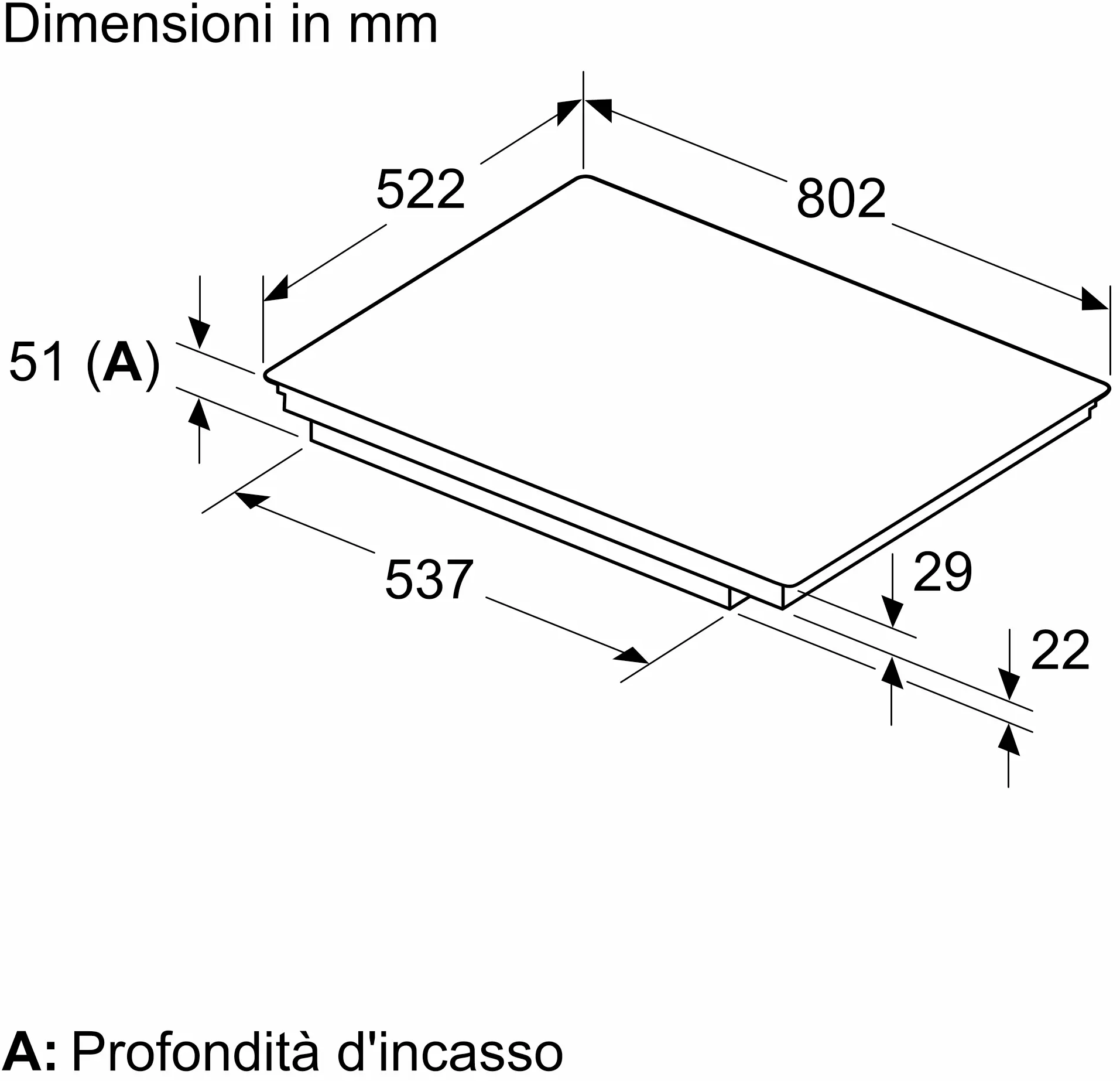 Installazione - Dimensioni (AxLxP): 51x802x522 mm