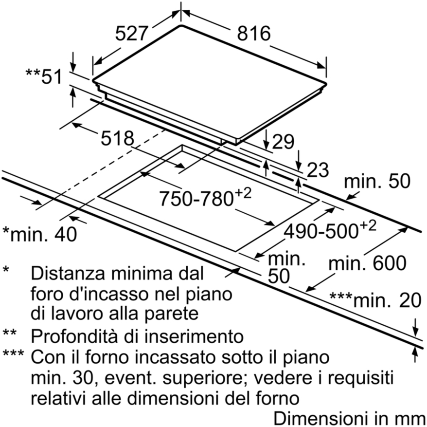 - Abbinabile a piani di cottura e domino in vetroceramica con ComfortProfil: profili laterali in acciaio inox
