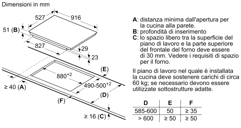 Dati tecnici - 90 cm: spazio per 5 pentole o padelle