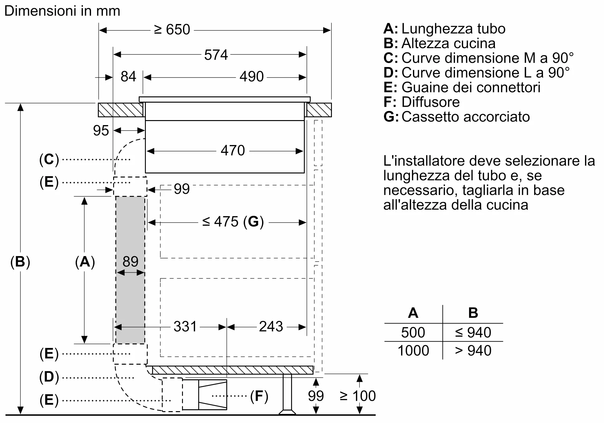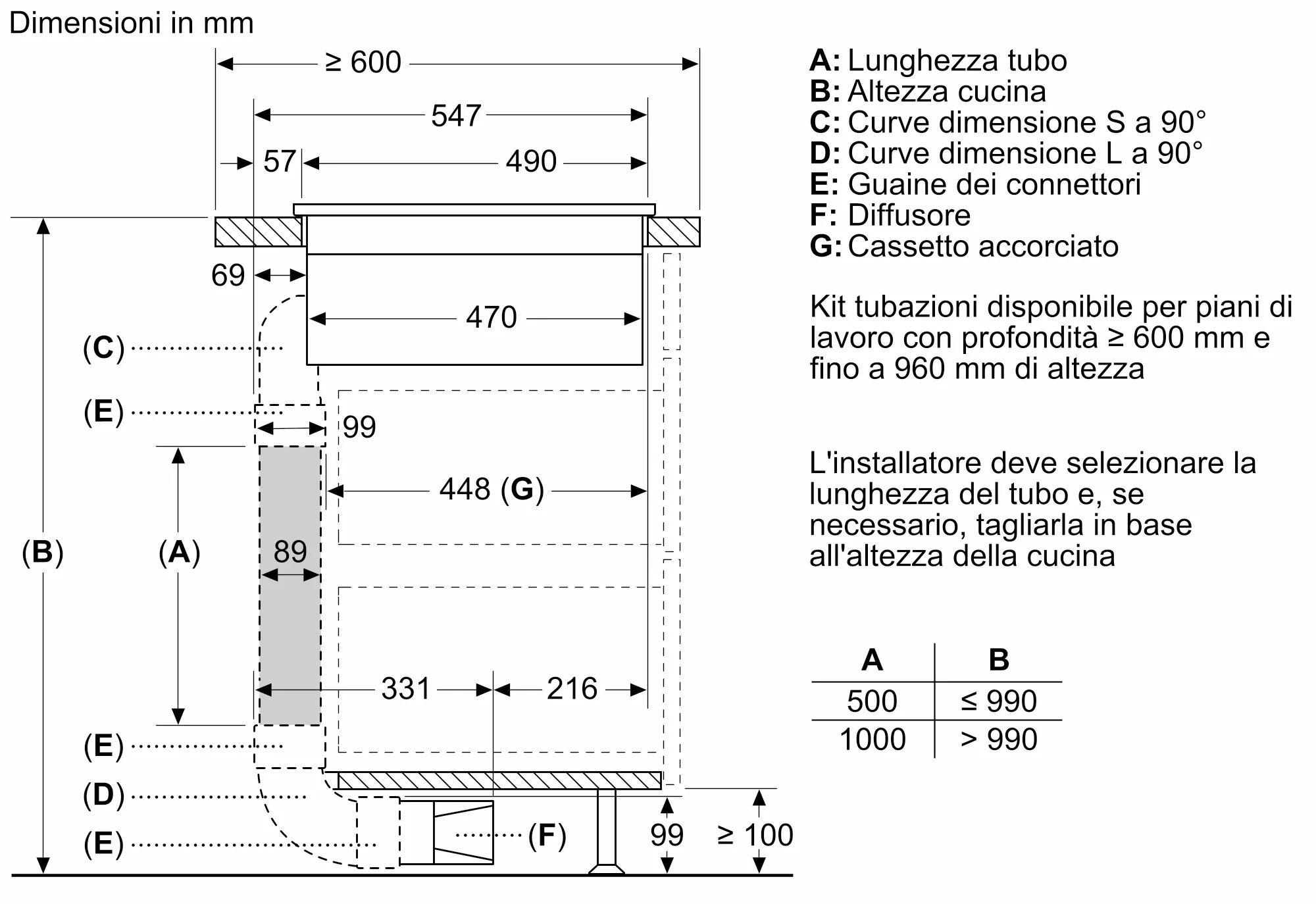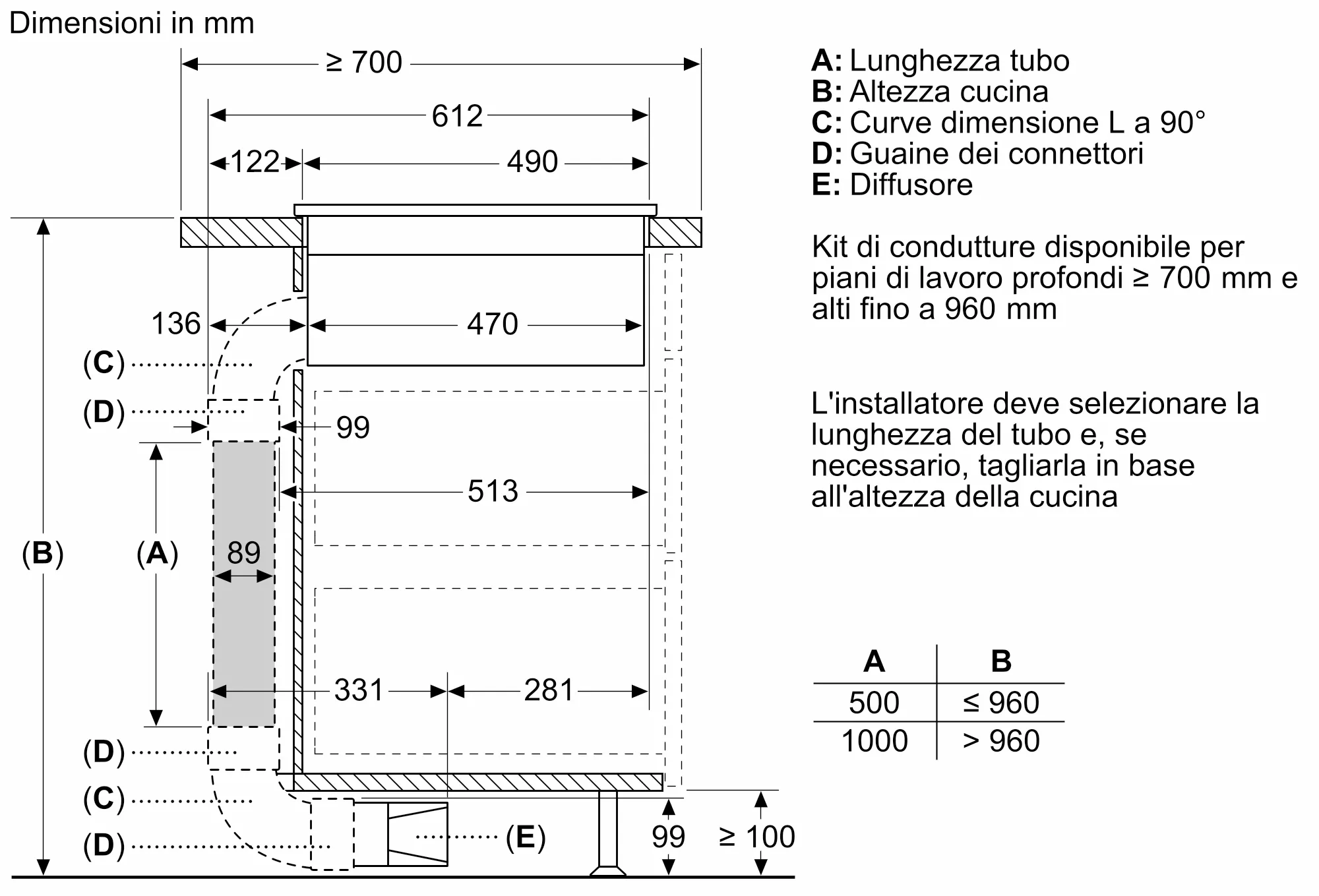 - Kit ricircolo canalizzato per top > di 60cm: HEZ9VDKR0