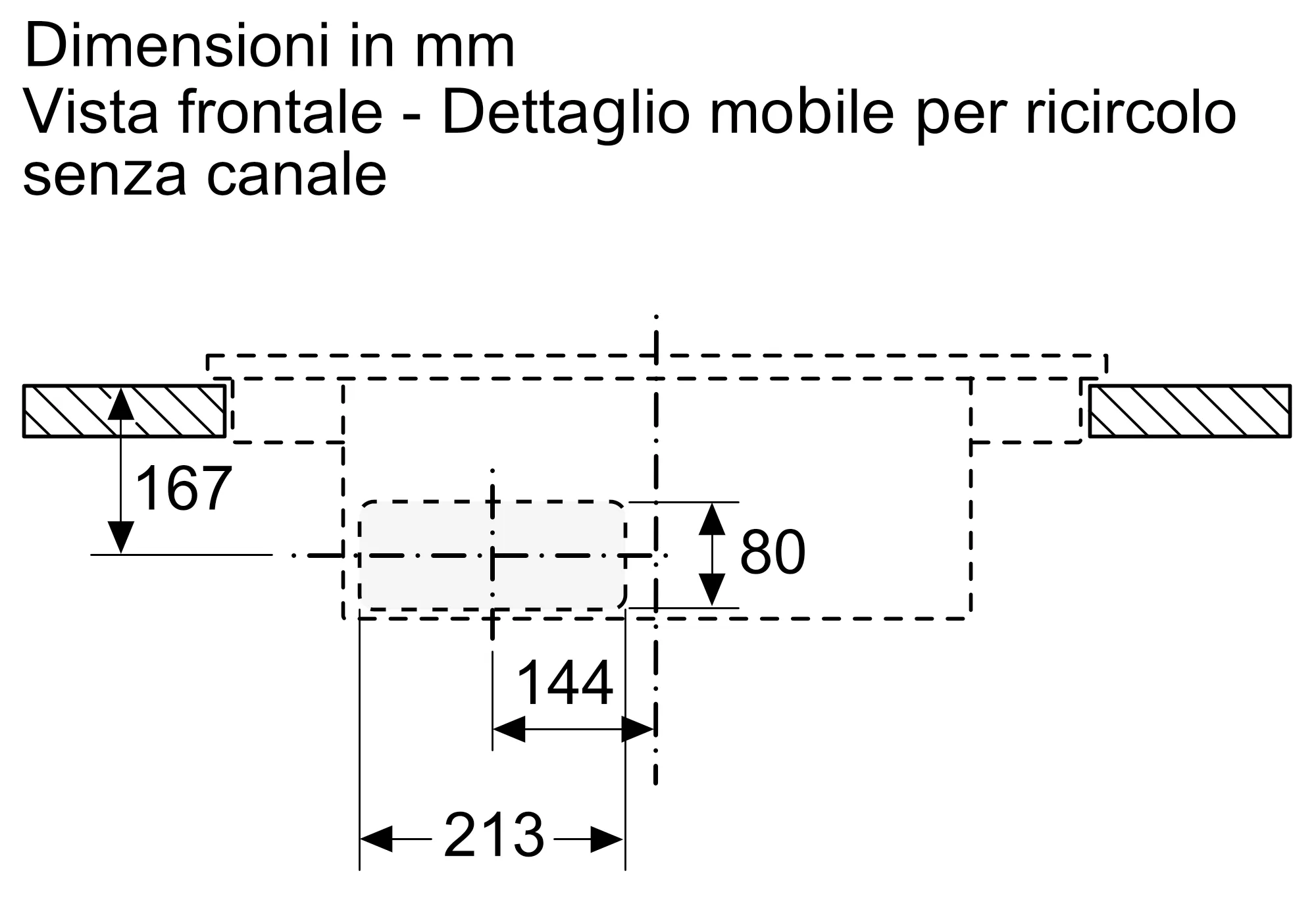 - L'installazione a ricircolo non canalizzato richiede un'apertura verticale di min. 25mm dietro il pannello posteriore del mobile. Per prestazioni ideali si consiglia un'apertura di 50mm.