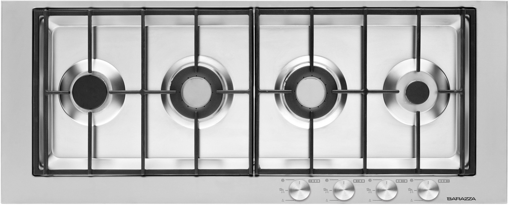 Descrizione: Piano cottura B_Free a gas valvolato in acciaio incasso, cm 100, 4 fuochi, comandi frontali