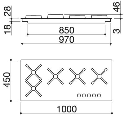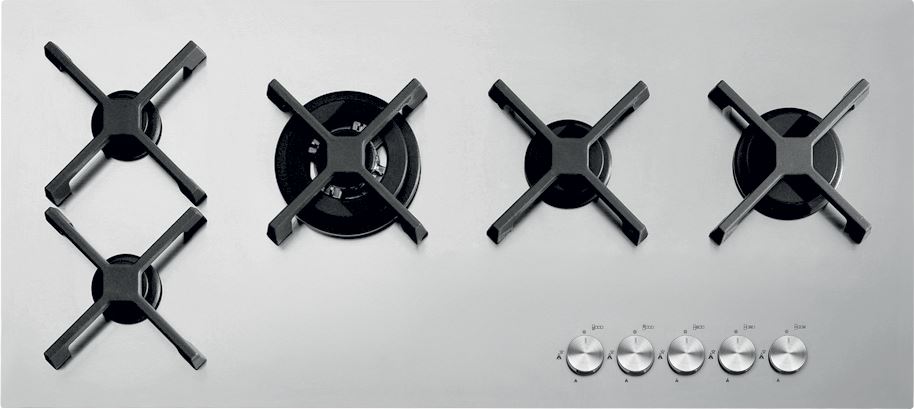 Descrizione: Piano cottura Select Flat a gas valvolato in acciaio incasso e filo, cm 100, 5 fuochi, comandi frontali