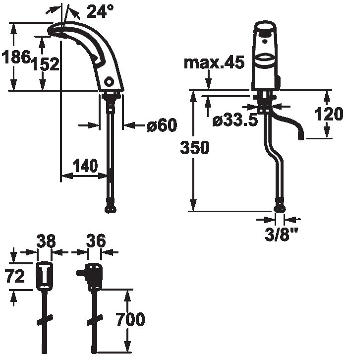 – ritardo di chiusura regolabili (1 secondo impostazione di fabbrica) – disattivazione breve (puliza) regolabili – attivazione continua (riempimento) regolabili – sensibilità del sensore regolabili permanentemente automatico e con autoregolazione – risciacquo igienico a 12 o 24 ore attivabile – Neoperl® Cascade®