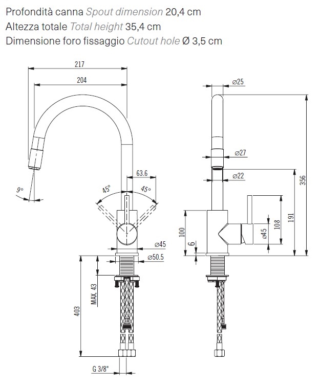 - Foro incasso diametro 3,5 cm